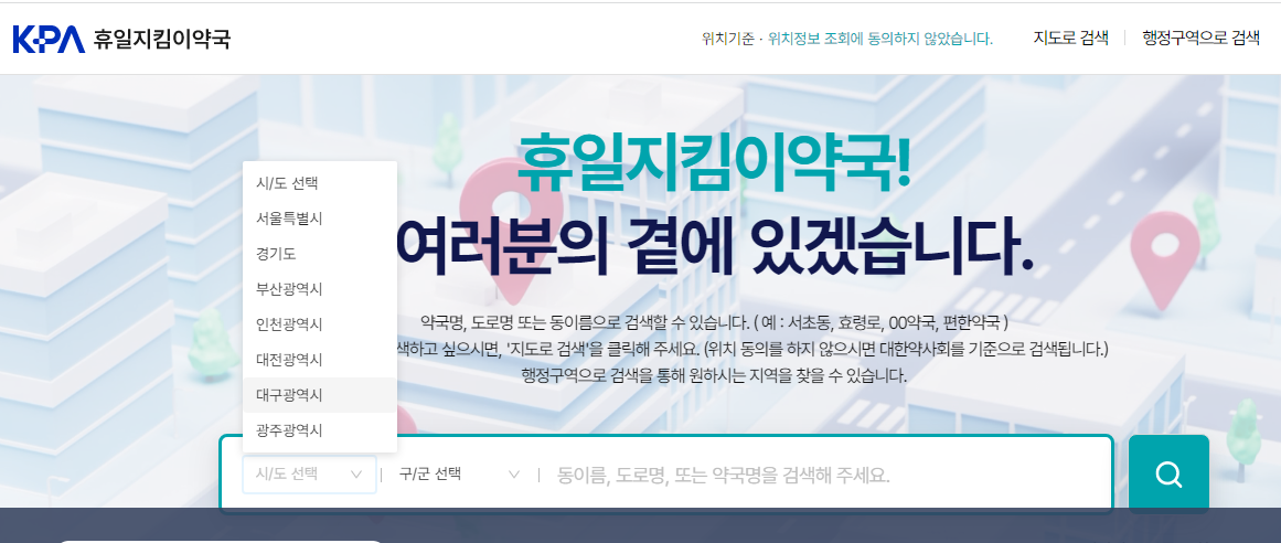 - → 지역별 보건소 지정 약국 안내 방법 설명
