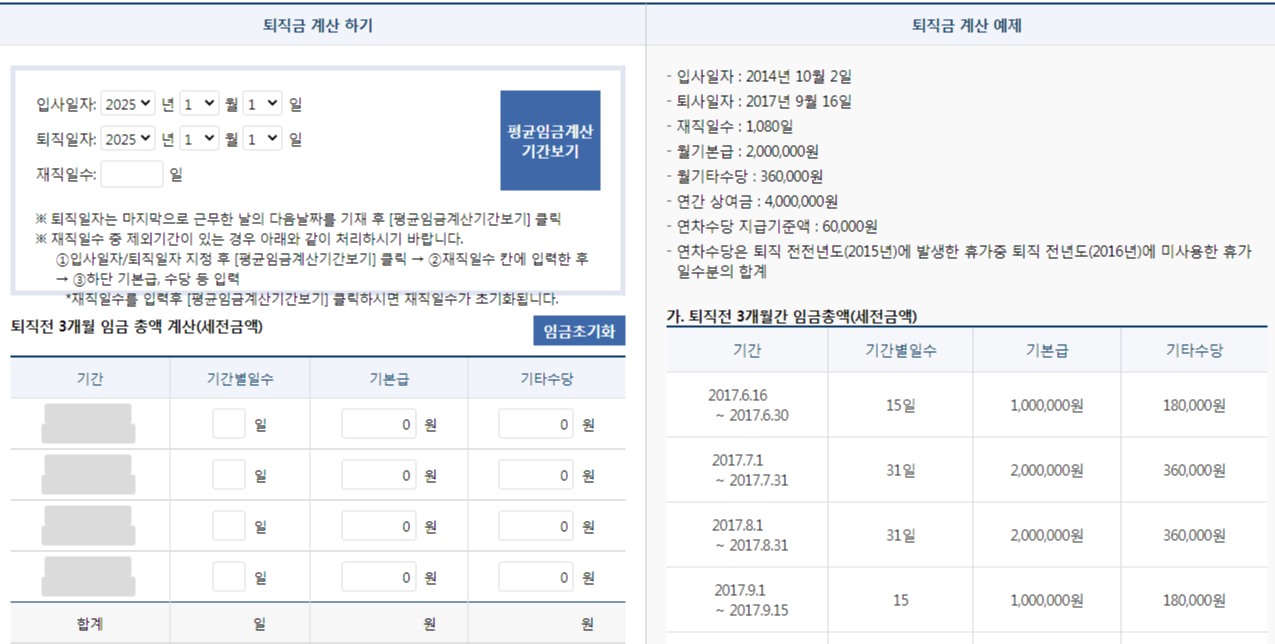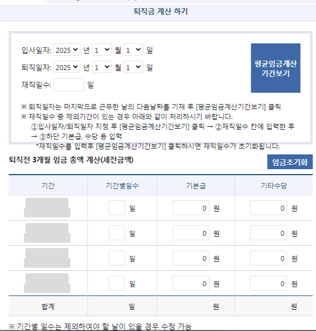 ✅ 퇴직금 세전세후 계산기 사용법