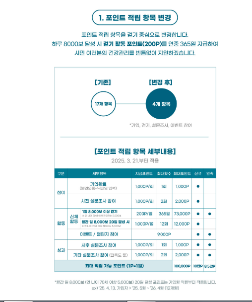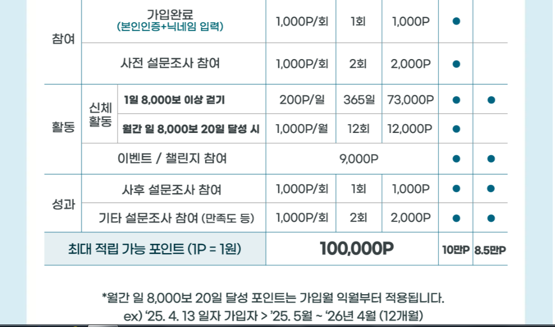 - 걷기, 건강검진, 운동 등 건강한 생활을 실천하면 자동으로 포인트가 쌓입니다.