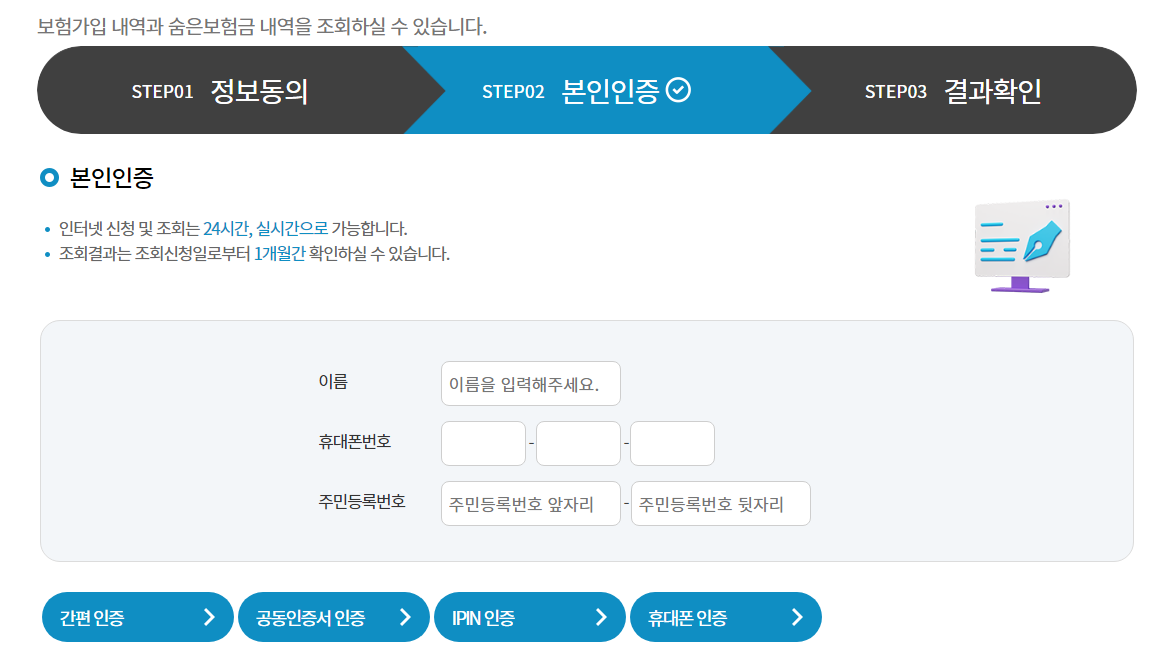 이름, 주민등록번호만 입력하면 자신이 가입한 모든 보험 내역과 숨은 보험금을 한눈에 확인할 수 있어요.