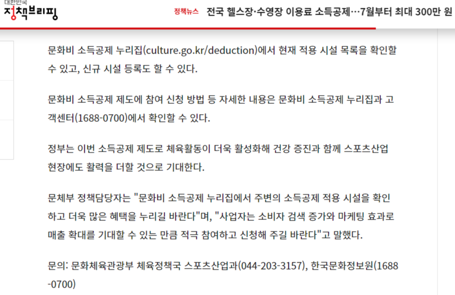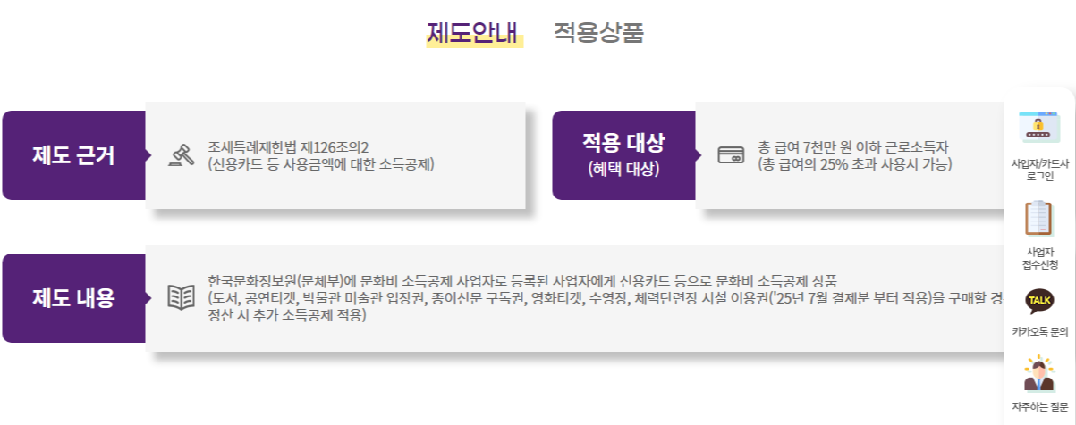 | 대상 항목 | 도서, 공연, 영화, 체육시설 이용비 (카드 결제) |
