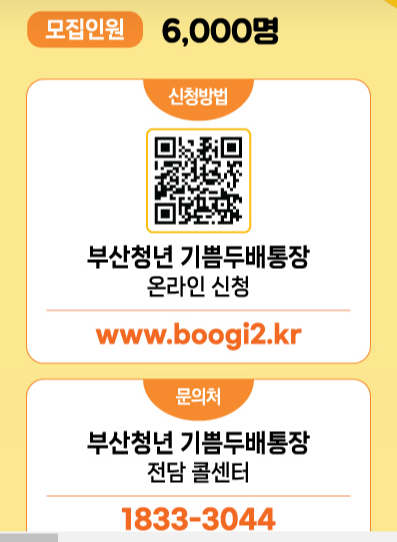 문의처: 부산청년 기쁨두배통장 콜센터 1833-7044