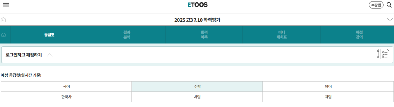 | 진학사 | 등급컷 예측 + 문제지 업로드 | 진학사 모의고사 섹션 |